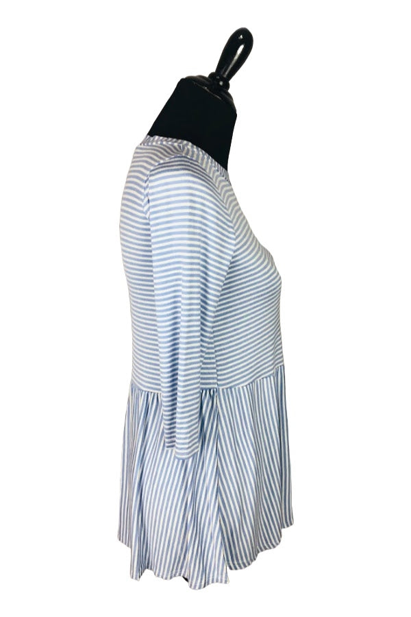 This lightweight knit peplum top is perfect for spring and summer. It looks great paired with your favorite denim or white skirt.